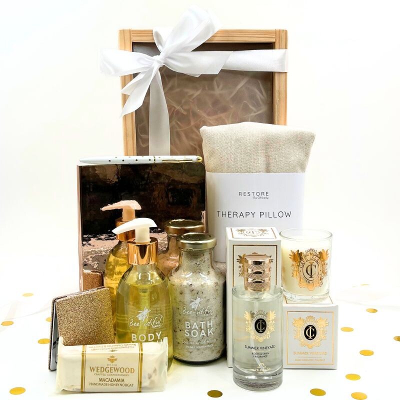 We have filled our gift box with pamper goodies, nougat, and keepsakes.