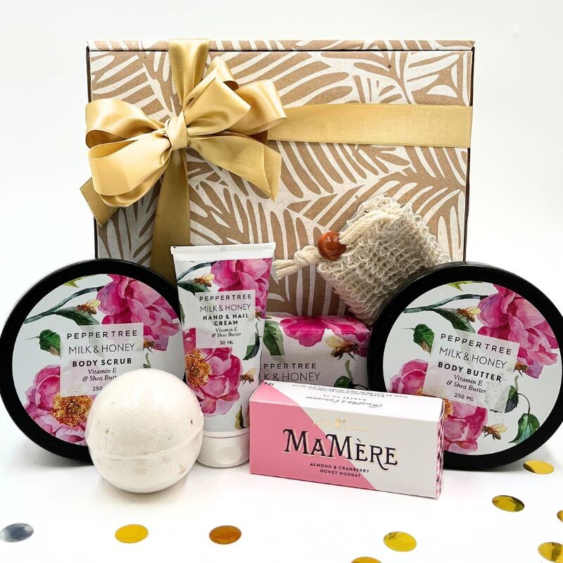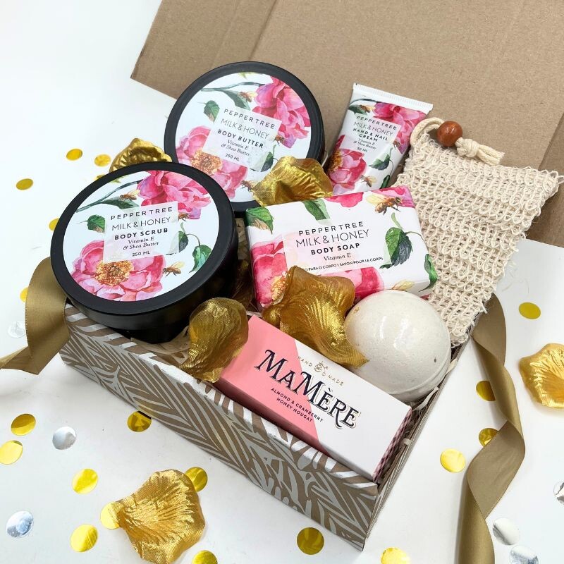 Inside you can find stunning Milk & Honey Pamper Products from our collection and nougat.