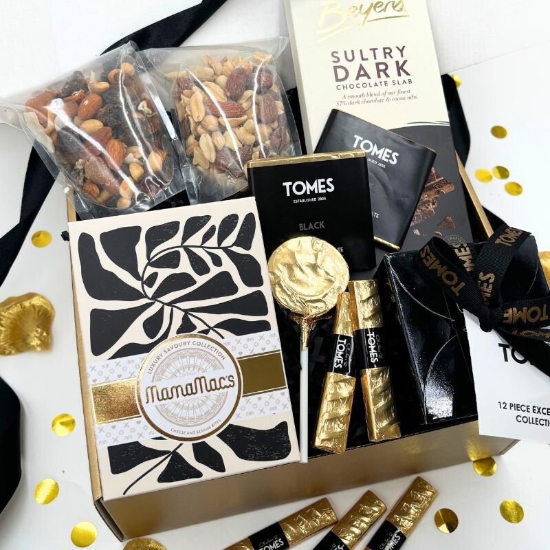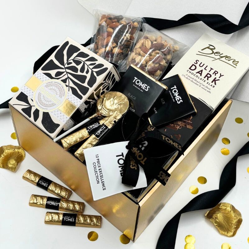 This hamper is beautifully wrapped in our gold gift box, finished off with satin ribbon.